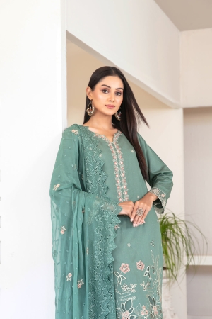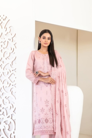 Tawakkal Fabrics Embroidered Viscose Zari Suits Unstitched 3 Piece (Embroidered Schiffli Chiffon Dupatta) – D-4388 – Najwa