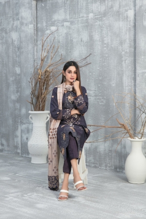 Tawakkal Fabrics Emboidered Linen Suits Unstitched 3 Piece TWF25ST D-1096 – Winter Collection