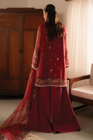 Zarif Unstitched Embroidered Net Suits 3 Piece ZRF25UF ZLC 04 BURNT ROSE - Festive Collection