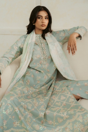 Lawn embroidered digital printed front (1 pc)