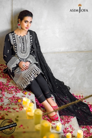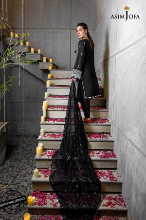 Eloquently beautiful Iqra Aziz slays in this black attire. A noir lawn base is decked with stunning off white threadwork uplifted by heavy 9mm sequins giving it a tribal feel. It’s complemented by a diaphanous heavily embroidered chiffon dupatta and plain dyed cotton trouser.
