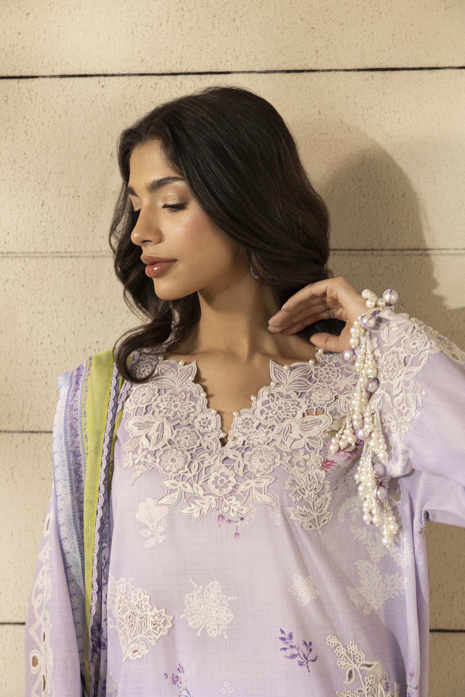| Embroidered Neck On Organza | |