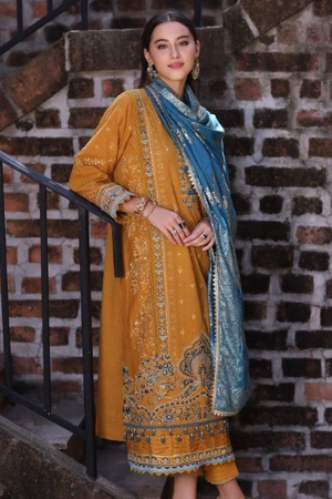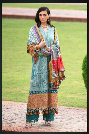 Dyed + Embroidered Daman + Sleeves Border (Blue) On Lawn | 2 Meters |