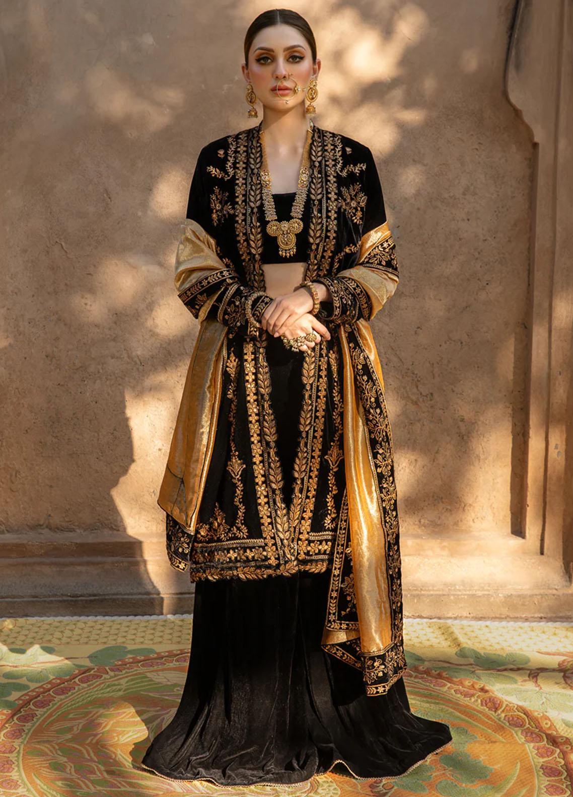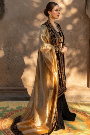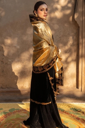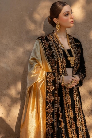 Sequined Embroidered Shirt Sleeve And Dupatta Border On Dyed Velvet 315 Inches