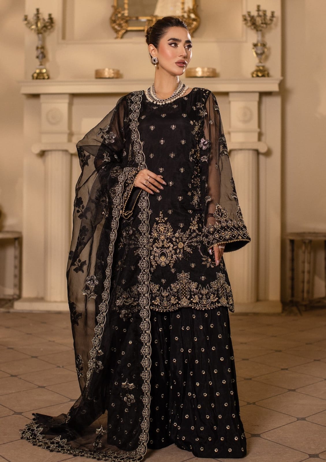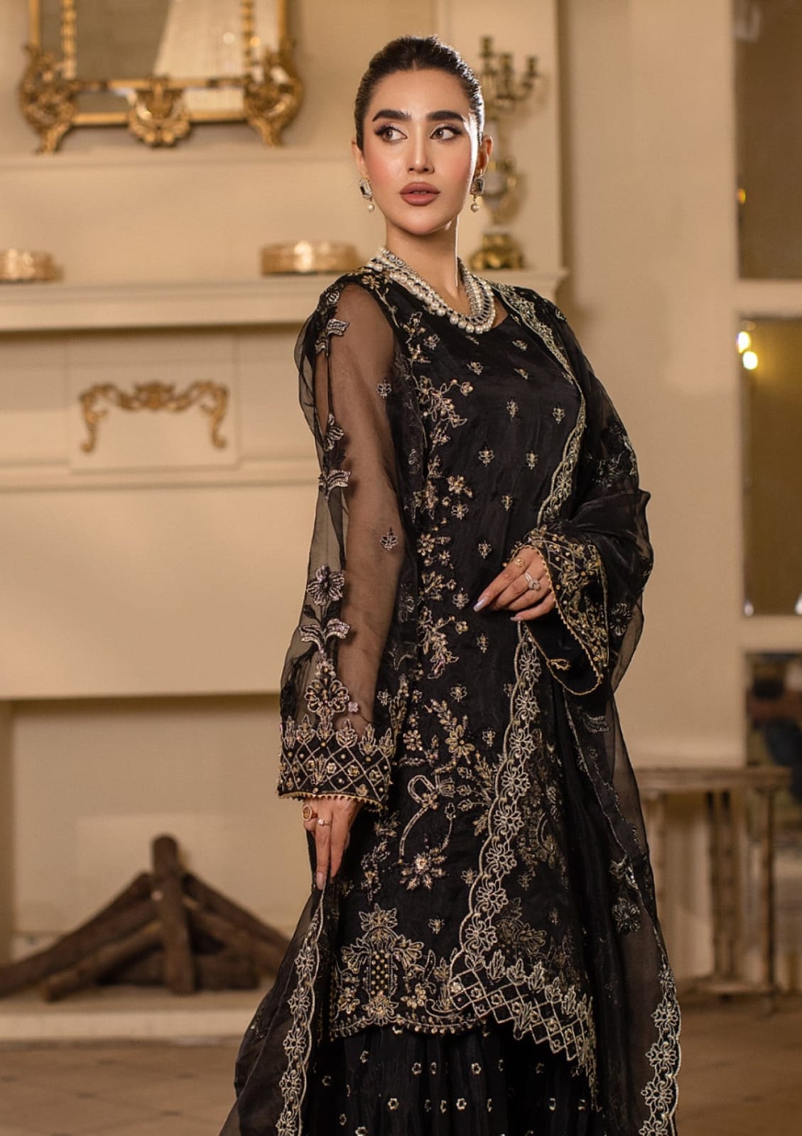 Hand Embelished Emb Front On Organza (1pc)