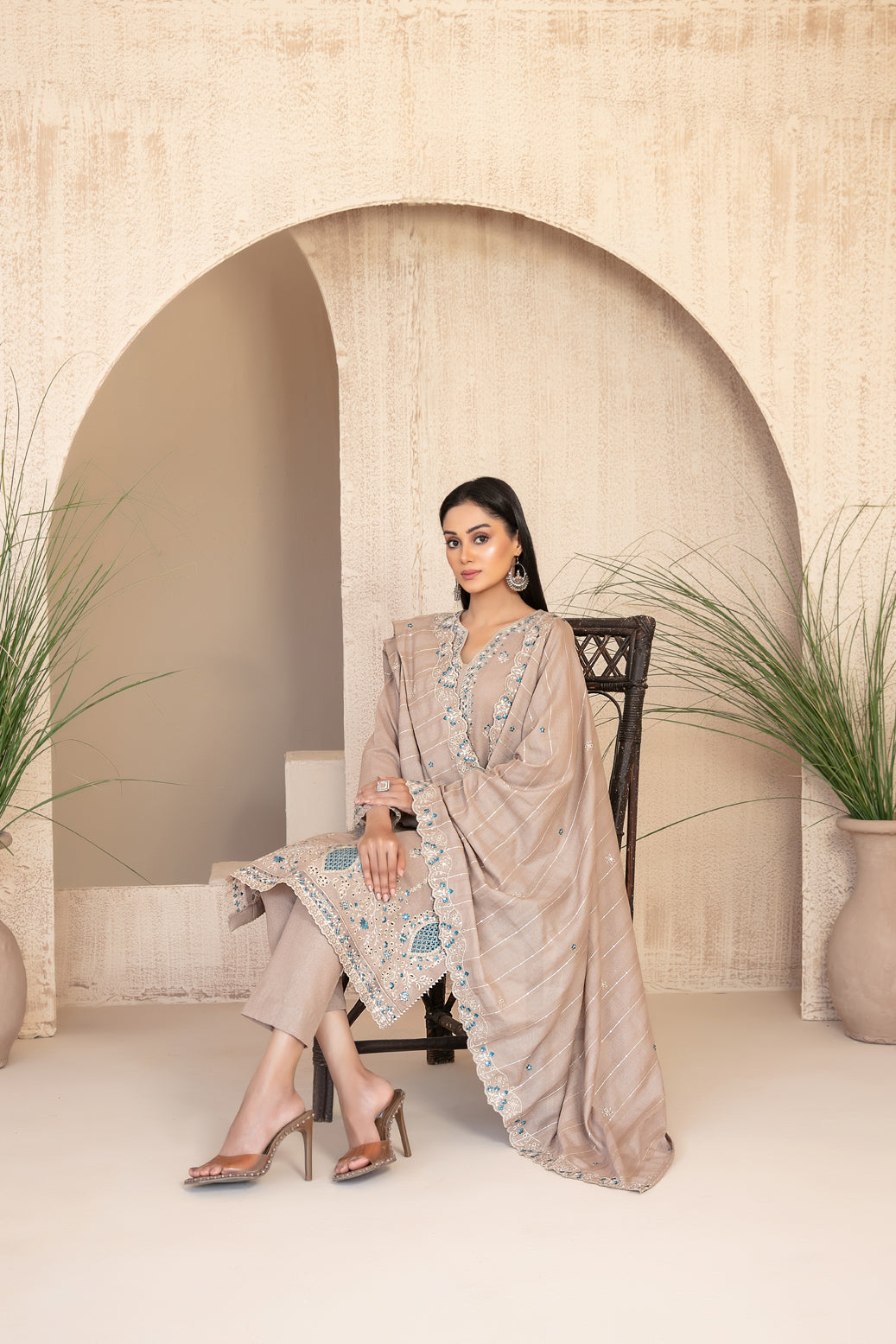 3 Piece Un-Stitched Collection By Tawakkal Fabrics, Attractive & Elegant Karandi Collection comes with: