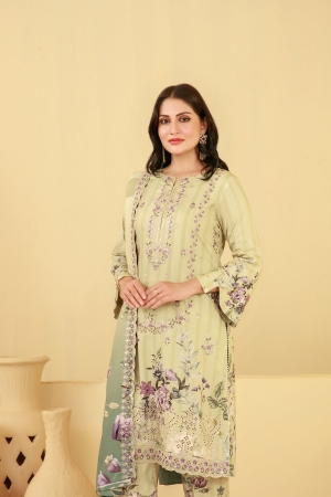 3 Piece Un-Stitched Collection By Tawakkal Fabrics, Attractive & Elegant Staple Collection comes with: