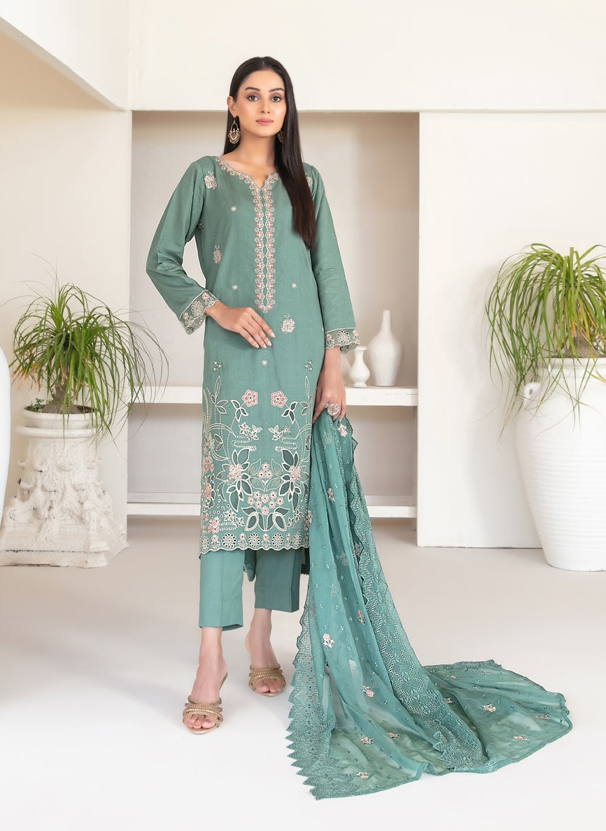 3 Piece Un-Stitched Collection By Tawakkal Fabrics, Attractive & Elegant Viscose Zari Collection comes with: