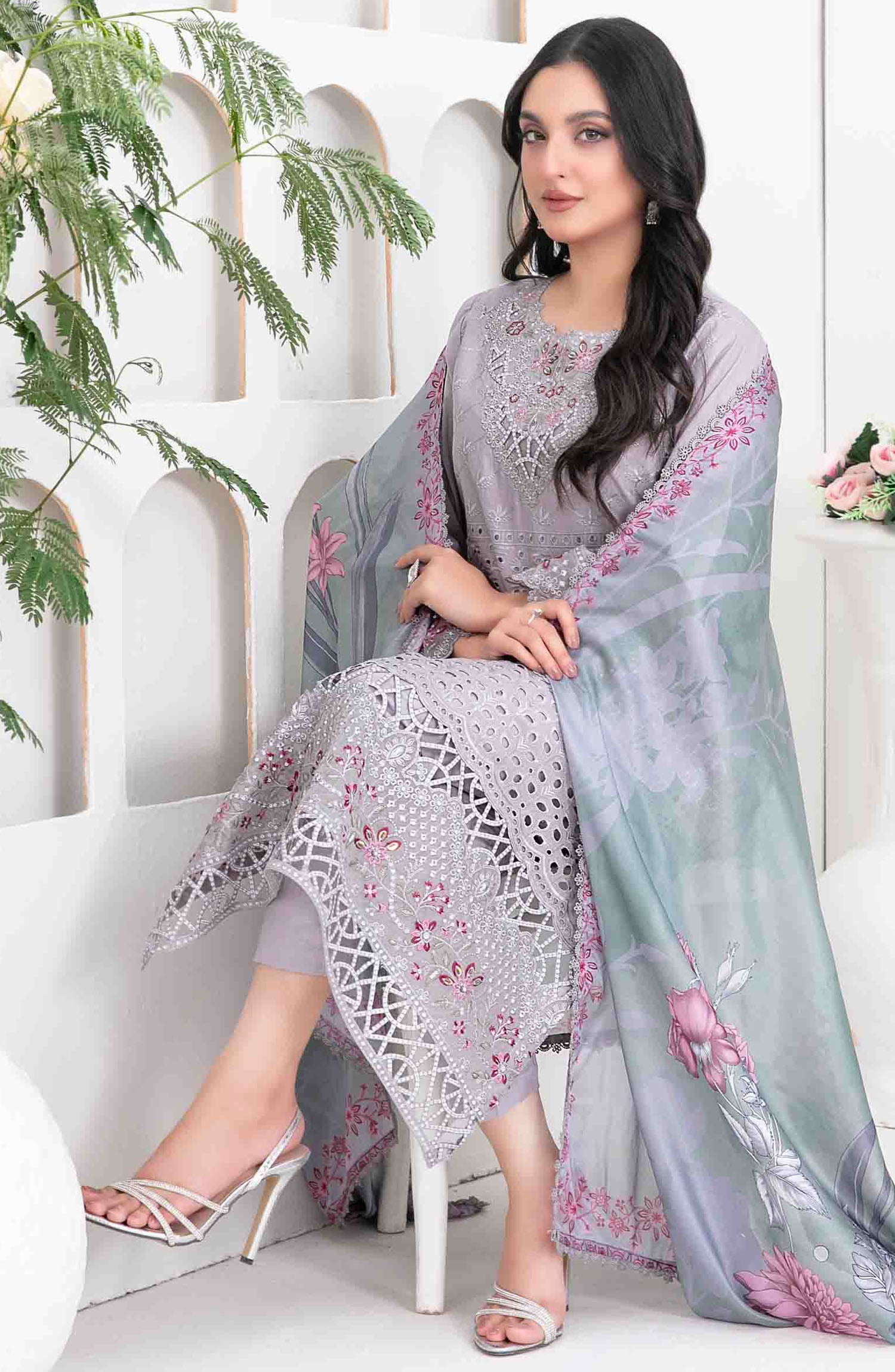 3 Piece Semi-Stitched Collection By Tawakkal Fabrics, Attractive & Elegant Embroidered lawn Collection comes with: