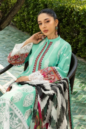 This mint green creation exudes a subtle yet captivating charm, with timeless chikankari embroidery gracefully adorning the shirt. The sleeves, with their meticulously crafted detailing, become a focal point, showcasing the artistry of the design. The soft, refreshing hue complements the intricate white work, creating a look that is both feminine and refined. The beautifully coordinated dupatta completes this ethereal ensemble, making it an ideal choice for those seeking a graceful and sophisticated style.