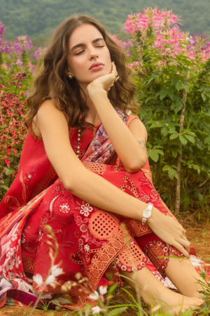 Broadway by Mahnur Embroidered Lawn Suits Unstitched 3 Piece MN25B D-12 Scarlet – Summer Collection